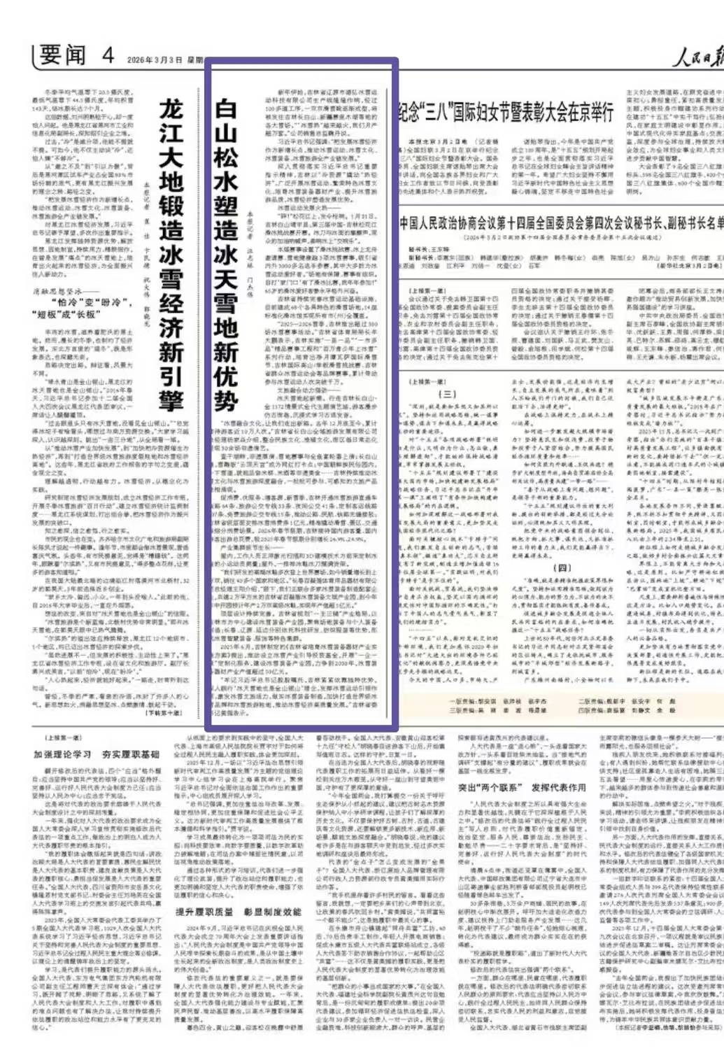 查干湖畔,非遗展演、雪地赛事与全鱼宴轮番上演;长白山巅,雪雕版“云顶天宫”成为网红打卡点;中国朝鲜族民俗园内,一下雪道,就能品尝米糕、米酒等非遗美食……吉林持续推动冰雪文化与冰雪旅游深度融合,一批批可参与、可感知的文旅产品竞相涌现。